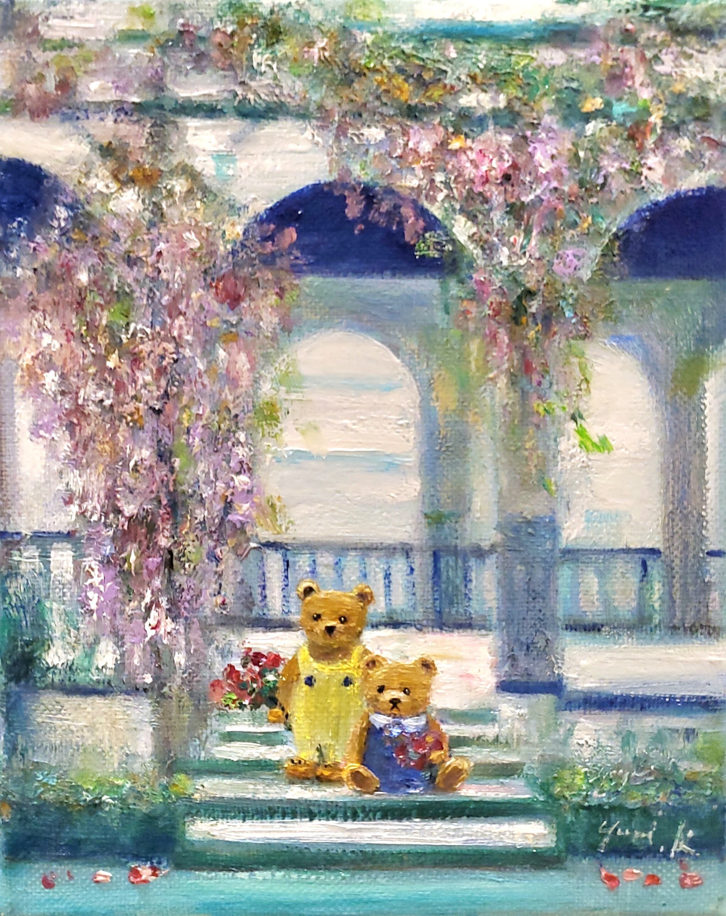 絵画 「Rendezvous in Glycine」 F0 額付 油彩画 Yumi Kohnoura 神之浦由美 作品 原画