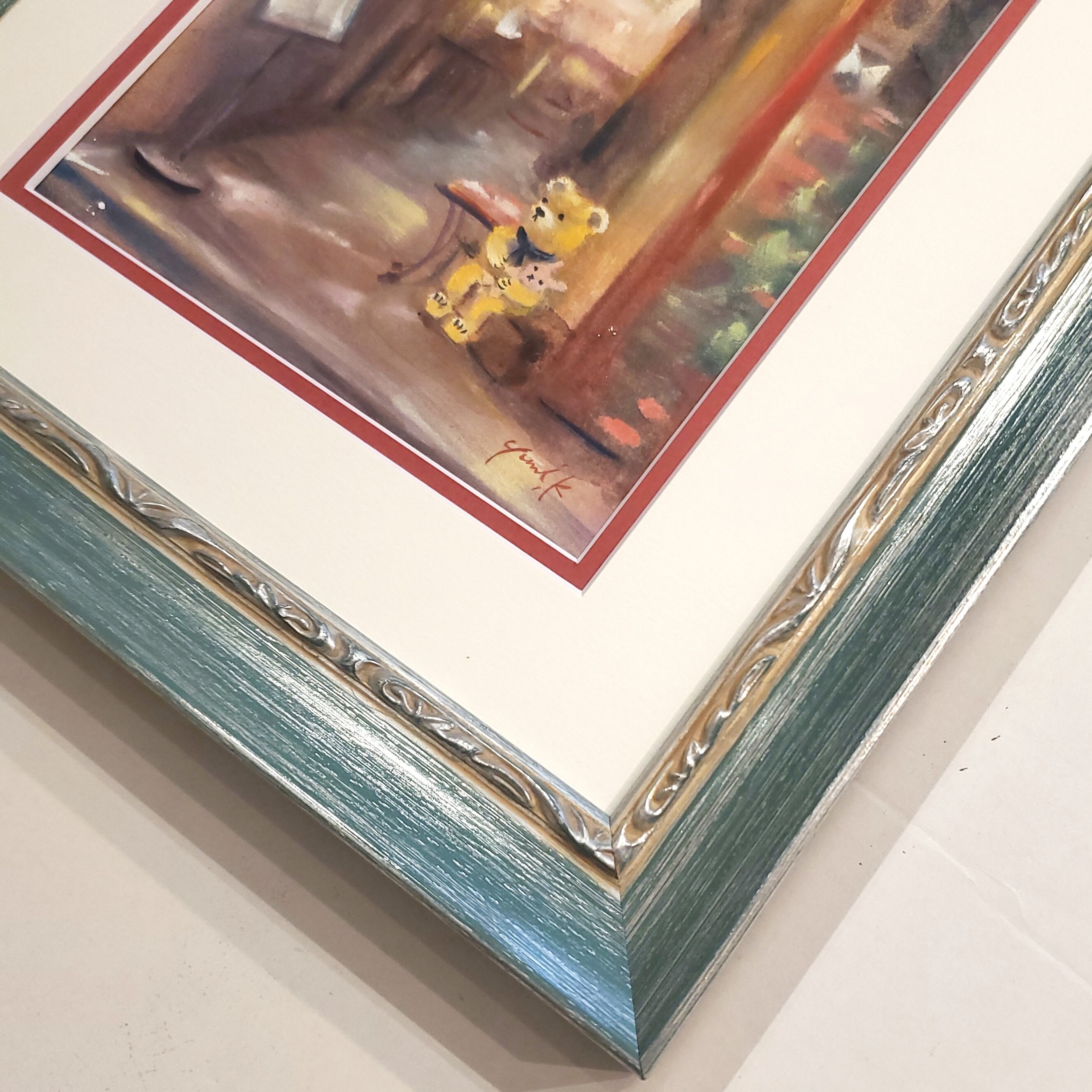 透明水彩と作家がオリジナルで制作しているパステル、JESUSPASTEL(ジーザスパステル)の混合技法で描いた作品原画です。リトアニア・ヴィリニュスの街角にテディベアが登場する大人可愛い作品。小さなサイズで飾りやすく、コレクションしやすい絵画です。お部屋のインテリアにもプレゼントにもおすすめです。水彩紙は英国王室水彩画協会認定のコットン100%中性紙を使用しています。