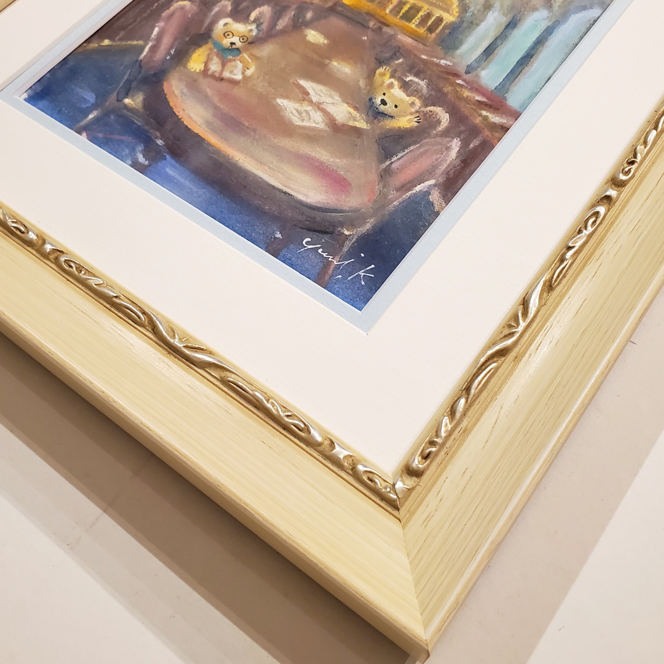 透明水彩と作家がオリジナルで制作しているパステル、JESUSPASTEL(ジーザスパステル)の混合技法で描いた作品原画です。リトアニア・ヴィリニュス大学の古書室からインスピレーションを受け描いた作品。小さなサイズで飾りやすく、コレクションしやすい絵画です。お部屋のインテリアにもプレゼントにもおすすめです。水彩紙は英国王室水彩画協会認定のコットン100%中性紙を使用しています。