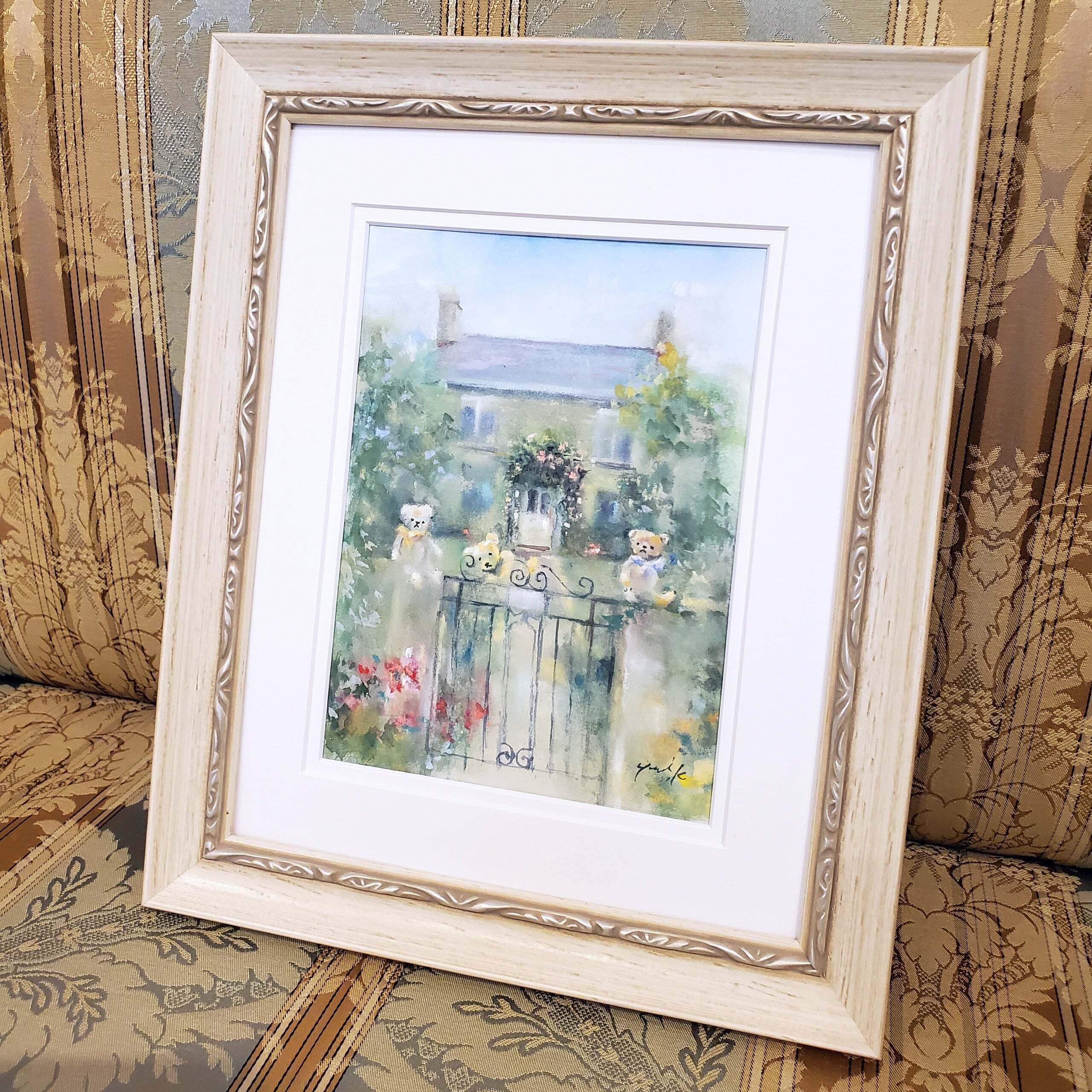 透明水彩と、作家がオリジナルで制作しているパステル、JESUSPASTEL(ジーザスパステル)の混合技法で描かれた作品原画です。水彩紙は英国王室水彩画協会認定のコットン100%中性紙を使用。
